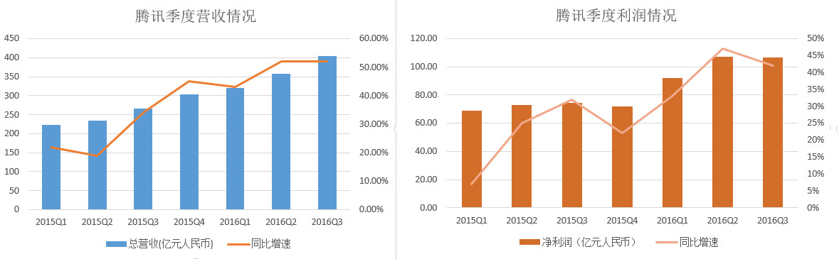 今日晚間,騰訊發布今天公布未經審核的第三季度財報。報告顯示,騰訊三季度總收入同比增長52%,增速與上季度持平;凈利潤增速有所下滑。